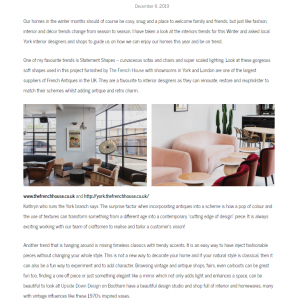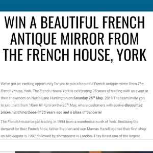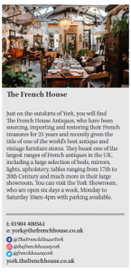 The French House has showrooms in York and London, and was first was established in 1994 on Micklegate, by father Stephen Hazell, and his son Marcus. They boast one of the largest ranges of French antiques in the UK, including a large selection of beds, mirrors, lights, tables – among many other treasures – ranging from the 17th to 20th Century. The stock is available to view in store at North Lane, Huntington York and Parsons Green, London and by appointment in their warehouses.